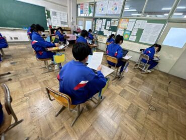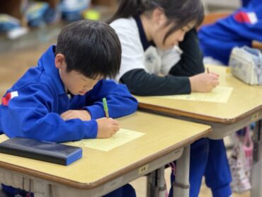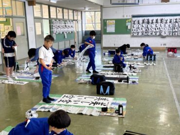 書き初め練習をしているところです。もう何度もしているので、文字の大きさのバランスも上手になってきています。書初大会に向けて、冬休み中も練習を頑張りましょう。