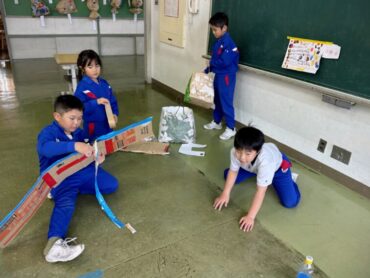 2時間目に1年生をおもちゃランドに招待しました。1時間目は、グループごとに力を合わせて、準備をしました。みんなとても張り切って、ワクワクしている様子です。