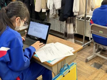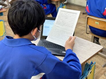 テストが終わった6年生から、卒業文集の入力をしていました。作文の書き方についての説明を見ながら、書き始めの工夫や分かりやすい文章校正に気を付けて入力していることが感じられました。キーボードを打つのもスムーズで、さすが6年生ですね。入力しながら、いろいろな思い出がよみがえってきたことでしょうね。