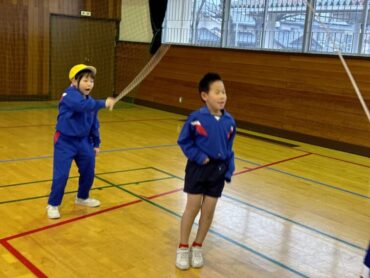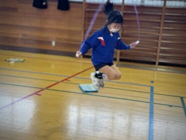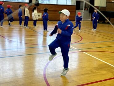 朝5運動 6年生は毎回1分間チャレンジをしています。8の字でどんどん跳んでいきます。2年生も今日見たらすごく上手にタイミングがとれるようになっていました。いつの間に?という感じです。