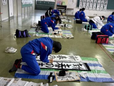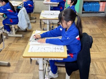 書き初め練習をしていました。静かに心を落ち着けて力強く書いています。「新春の志」の文字のとおり、ぜひ新しい年に大きな夢や目標をもって、努力してほしいと思います。