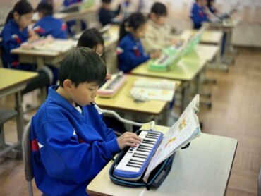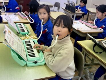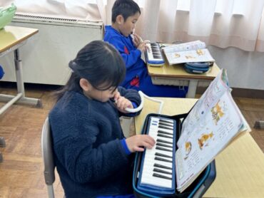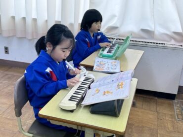 先日の音楽の続きで、「小ぎつね」をみんなで歌った後、鍵盤ハーモニカで演奏の練習をしました。難しいのは「指のお引越し」の部分のようです。先生の合図に合わせて、ゆっくりと練習し、指遣いを確かめました。。