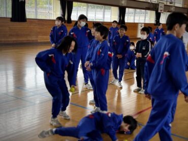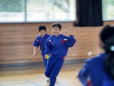 体育の時間には、リレーをしました。ボールがバトン代わりになっています。最後は倒れこむようにゴール。全力を尽くしたようです。