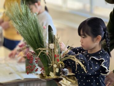 お正月飾りを付けると、さらにおめでたい雰囲気が出ました。みんないいものを作ろうと、真剣な表情です。