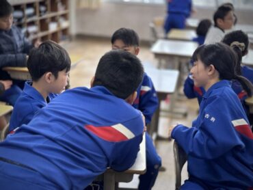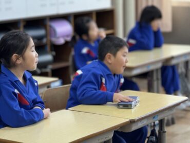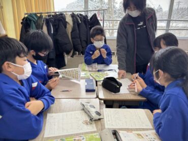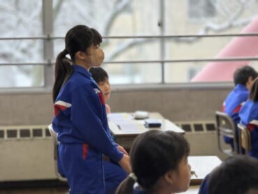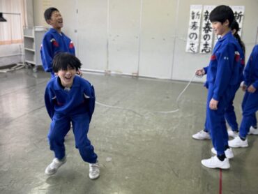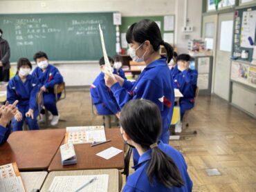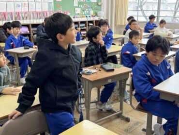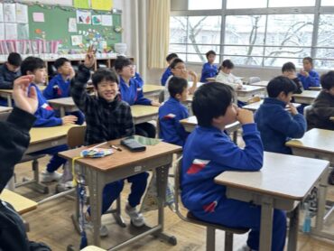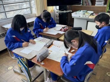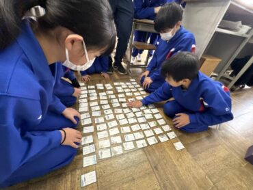 休み時間の様子です。教室前の広場で、元気に大縄跳びを楽しんでいました。速いスピードで縄が回っていますが、どんどんチャレンジしています。一方、教室の中では越中万葉かるたの練習をしていました。大会、頑張ってください!