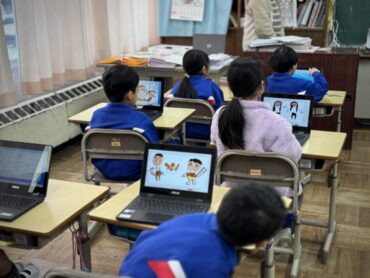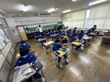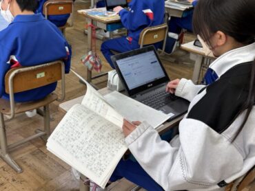 社会科の授業が始まっていました。今日は日中戦争の頃の出来事の学習だったようです。授業の終わりに、今日の学習についての「社会日記」を入力していました。平和な国際社会を臨む書き込みが多く見られました。