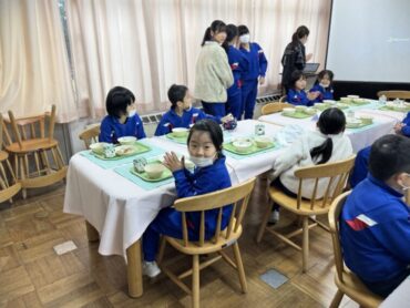 みんな楽しそうに給食をいただいています。好き嫌いもなく、どんどん食べています。