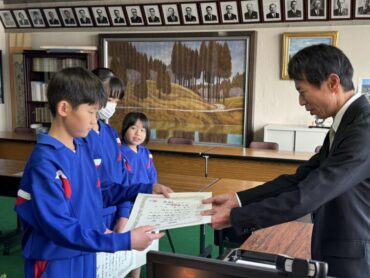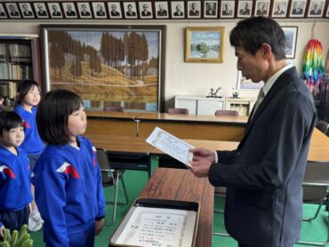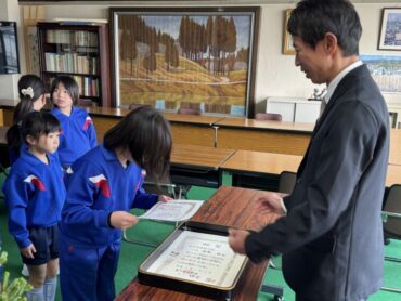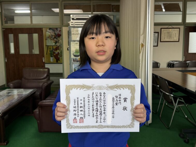 2026.1.15 1年生 2年生 3年生 4年生 5年生 6年生 1/15(木) 授賞式を行いました 1/15(木) 校長室で授賞式を行いました。 「ごはん・お米とわたし」作文・図画コンクール 図画部門努力賞 第67回伏木地区児童クラブ書初大会 北日本新聞社賞(金賞) 今回受賞された皆さん、おめでとうございます!これからもチャレンジや練習を積み重ねていってください。