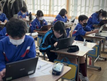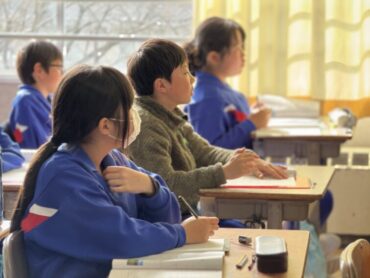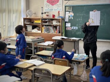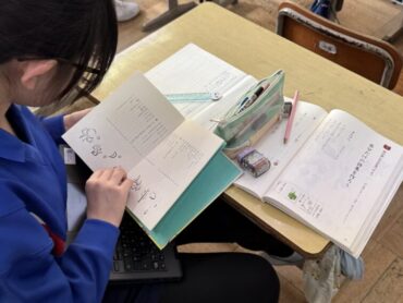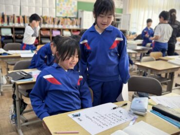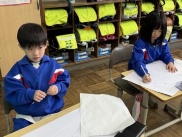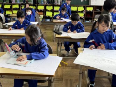 3年生の課題は国語「自分のつくった詩をせい書しよう」でした。先生がみんなに紹介したきりんの詩は、音のリズムがとても面白く、絵も上手に描けていました。みんな楽しんで詩を作っていました。