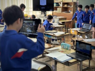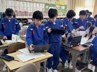 学習専用端末で何を撮影しているのかな?と見てみると、詩や詩の本を撮影していました。4年生も詩の授業でした。今日の学習課題は、「詩集のテーマを決め、詩をたくさん読み、テーマに合った詩を集めよう。」です。教室に用意してあった詩集等を読んで、気に入った詩を取り込んでいました。