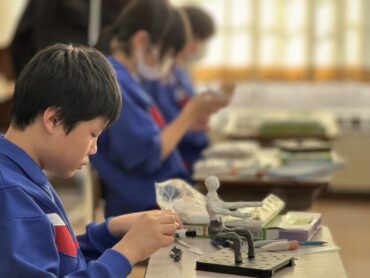 図工の作品作りが進んでいました。針金でポーズを作り、紙粘土で肉付けをしていきます。生き生きとした動きのあるポーズにすると面白いですね。童心に返ったように紙粘土を色を混ぜてこねこねしていました。