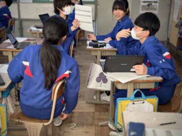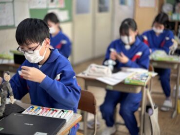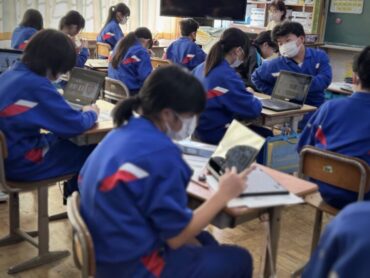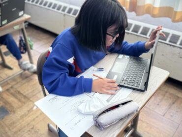 1組は図工「未来のわたし」に取り掛かり始めたところです。ワークシートに「未来の自分が何をしているか」とそのイメージから「どのようなものを作るか」ポーズや服等を絵や言葉で書きました。学習専用端末を活用して、イメージに合う画像を検索して参考にしている6年生も多くいました。