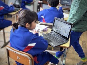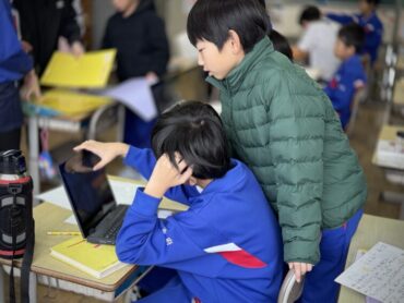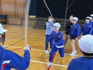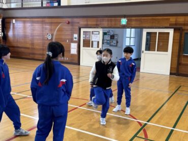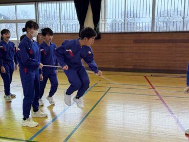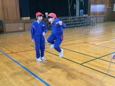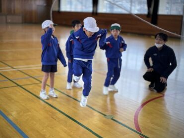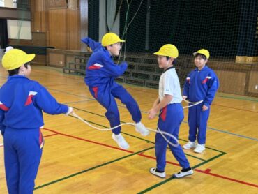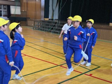 体育の授業で、大なわ跳びをしていました。先生がそばについて声をかけなくても、自分でタイミングをはかって跳べる1年生が多くなりました。跳ぶ姿も様になっています。