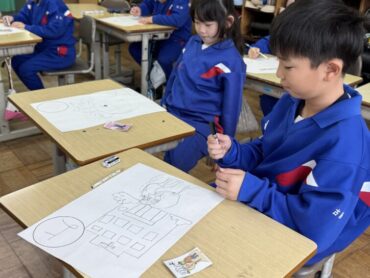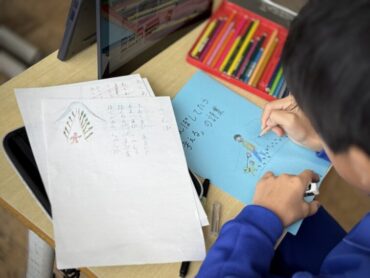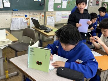 国語の詩集作りが進んでいました。お気に入りの詩を紙に書き写したものをつづる画用紙に表紙を付けました。みんな熱心に作業しています。友達の手作り詩集はどのような出来栄えでしょうか。交換して読むのが待ち遠しいですね。