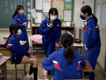左:運動委員会、右も:なわとび大会の練習をする運動委員会