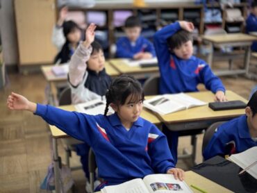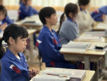算数の分数の授業です。新しく仮分数が出てきました。これまで、分子より分母の方が大きい分数ばかりだったので、こんな分数があるのかな?と戸惑っている様子も見られました。