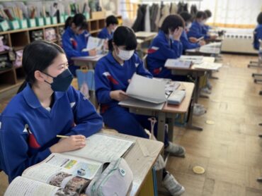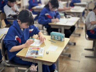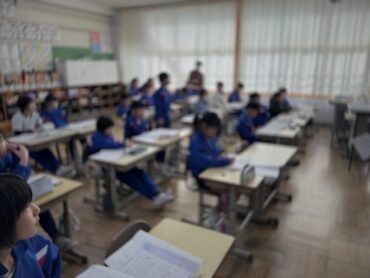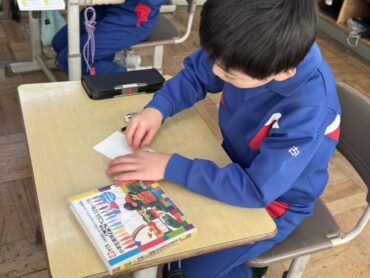 社会科で太平洋戦争の頃の勉強をしていました。みんなよく授業を聞いてノートもとっています。これから「日本軍の戦いの様子」や「戦争で亡くなった人の数」等、教科書や資料集で調べる活動に入るようです。しっかり学んで、平和な社会を築いていってほしいと思います。