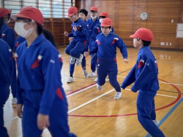 今日の朝5運動、体育館は6年生と4年生です。