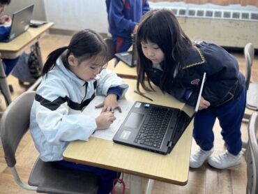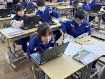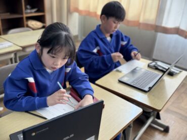 国語「ロボット」の授業もそろそろ終わりのようです。今日は学習専用端末や図書を使って、「お気に入りのロボットについてまとめよう」という課題に取り組みました。端末を使っている児童は画面を食い入るように見つめ、調べたことを記録していました。