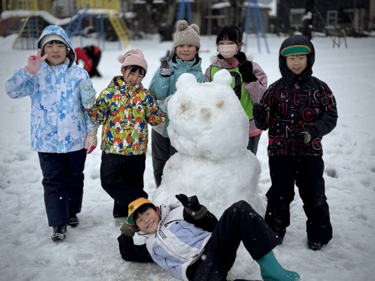 2026.1.28 1年生 2年生 3年生 4年生 5年生 6年生 1/28(水) 全校で雪像作り! 1/28(水) 今日は、低学年の大なわ大会を予定していましたが、グラウンドに雪がたくさん積もったので、この機会を利用して、全校で雪像作りをすることにしました。(大なわ大会は、低・中・高とも来週に変更します。) 縦割り班ごとに集まって、雪像を作りました。 昼休みを長く時間設定して活動しましたが、楽しい時間はあっという間に終わったようです。また、せっかくの雪を楽しみましょう。