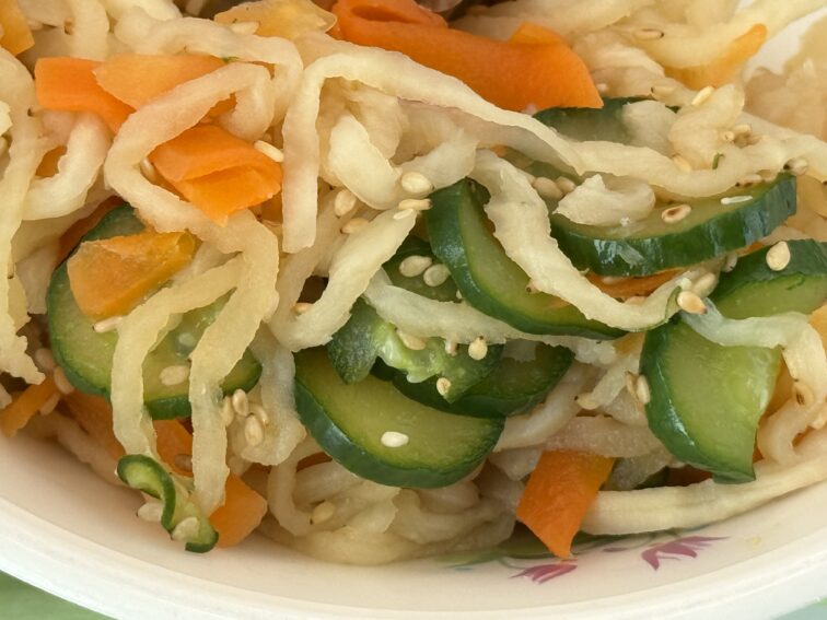 「切干大根のごま酢和え」には、皮付きの人参をそのままよく洗って使用しました。