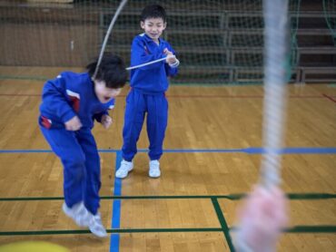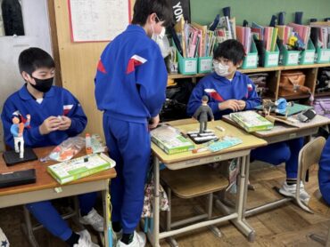 昔の遊びの紹介カードを作っているところでした。教科書等も参考にしながら、けん玉、お手玉、竹とんぼ、だるま落とし、こま等、のやり方や上手にできるこつを丁寧に書いていました。