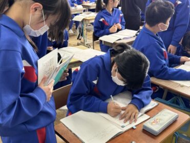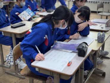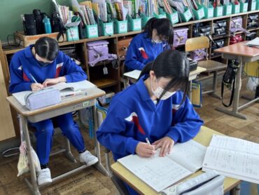 5限は習字です。今日書いていたのは「感謝」の2文字。明日の「感謝のつどい」に関係しているのでしょうか?
