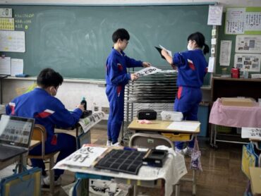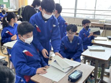 理科の授業で昨日の水を温める実験結果について話し合っていました。ノートに貼ってあるグラフを紹介しながら、温まり方について気付いたことを発表しました。きちんと記録がとられ、グラフがかかれていました。