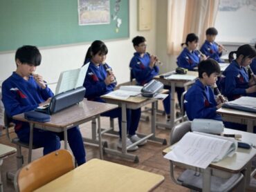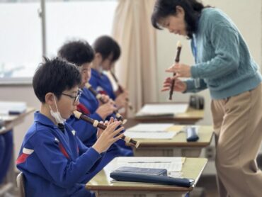 音楽の授業で、「Paradise Has No Border」のリコーダー演奏の練習をしていました。前回よりもスムーズに演奏できるようになってきています!6年生はいい姿勢で演奏していますね。