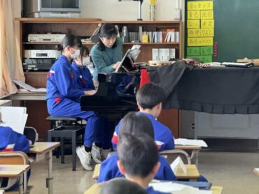 音楽の授業でリコーダーや鍵盤ハーモニカで「威風堂々」の練習をしていました。5年生は音楽交流会のときに、みんなでリズムを合わせて演奏することに取り組んできたので、「威風堂々」も素晴らしい合奏になることでしょう。