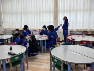 運動の企画について話し合っていました。「おにごっこ」と「ドッジボール」で多数決で「おにごっこ」になりました。みんなで元気に体を動かしましょう!