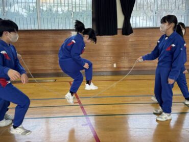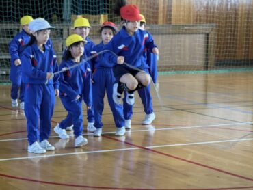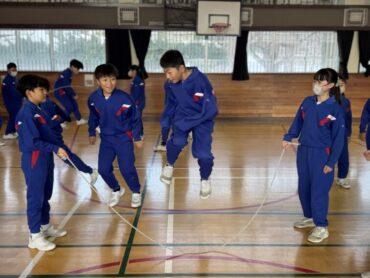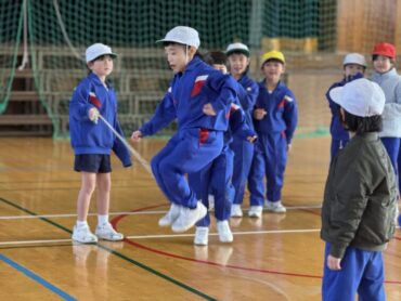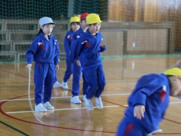 1年生 大なわとび大会が終わり、色団が入り混じって跳んでいました。
