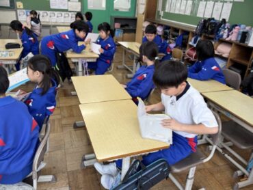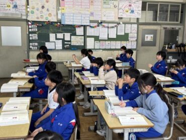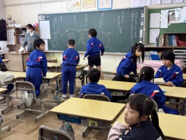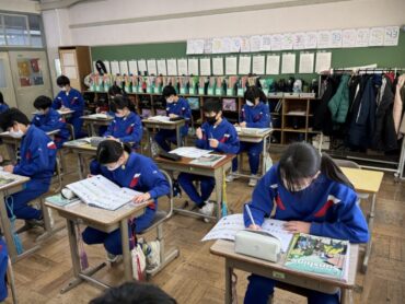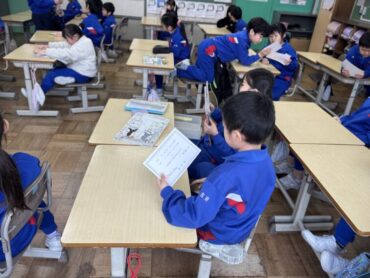 英語のかるたが終わったところで、何枚取れたか先生が尋ねているところでしした。中学校生活についてのかるただったようです。ドリルには中学校の部活動に関する単語を書きました。明日、6日(金)は伏木中学校の入学説明会です。卒業、入学がどんどん近付いてきていますね。