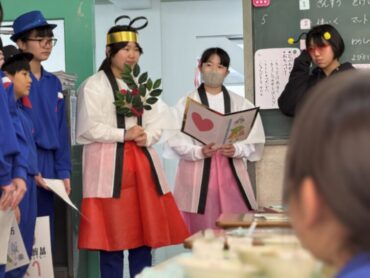 1年生教室です。教室に足を踏み入れた瞬間から、1年生、大注目です。