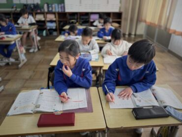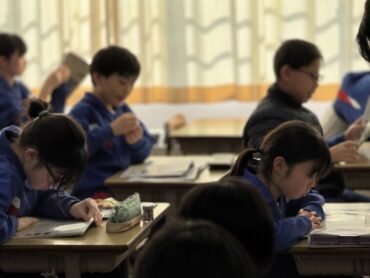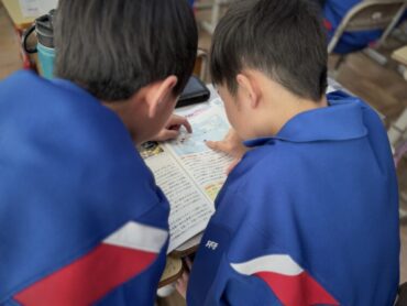 社会科の授業で、南砺市の国際交流の取組について勉強しています。教科書の地図を見ながら、いろいろな国々と交流していることや、何のために交流しどのような活動をしているのかを知って「すごい!」と驚いていました。