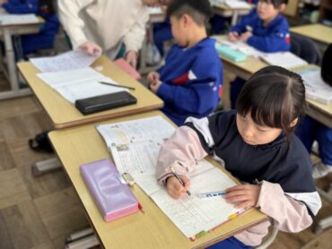 算数の文章問題を読んで、図に表す勉強です。「図って何?」と言っている児童もいましたが、教科書を見ながら線分図をかき進めていました。ものさしを使ってきれいにかくと、見やすくて問題を考えるのにとてもいいですね。