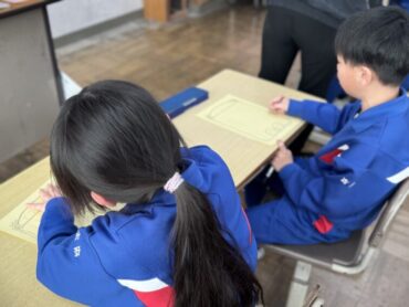 タグラグビー教室も2月18日(水)で終了です。これまで、熱心に指導してくださったコーチに手紙を書きました。1年間を振り返り、教わったことや自分が成長したこと等を心を込めて書いている様子でした。