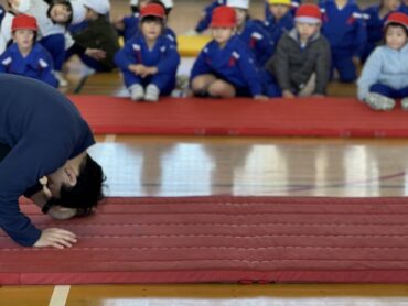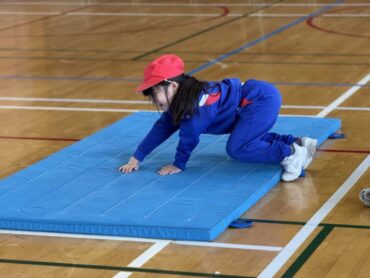 体育でマット運動をしていました。先生のお手本を見て、いろいろな練習場所に分かれて、運動しました。前転、後転、川跳び等、どんどんやってみていました。
