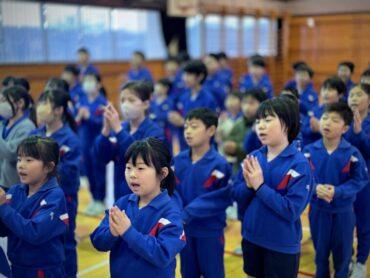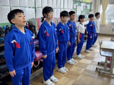 1~5年生は、今週金曜日の卒業を祝う会に向けて、歌とダンスの練習をしました。笑顔で元気に歌いました。