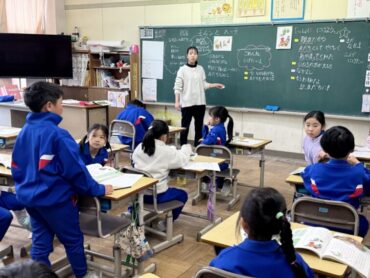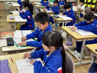国語で学習したことばのおさらいをしていました。かたかなの言葉を集めました。1年生はノートにかたかなの言葉を書いたり、声に出して読んだりしました。オリンピックに関係する言葉もたくさん出ていました。