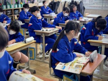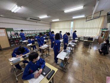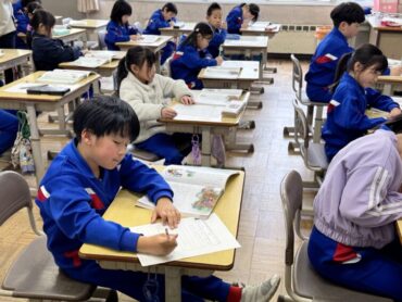 社会科ではもうすぐ期末テストのようです。資料集の年表等を見ながら、歴史上の人物や出来事の復習をしていました。大事なテストなので、いつも以上に真剣な様子でした。