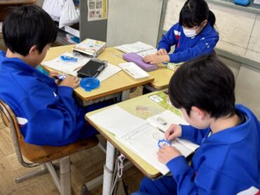 道徳の教材「モムンとヘーテ」の授業をしていました。この話を読んで学んだことをワークシートに書いたり、発表したりしました。どんな話だったか、お家で聞いてみてください。