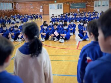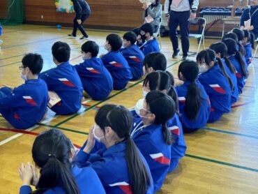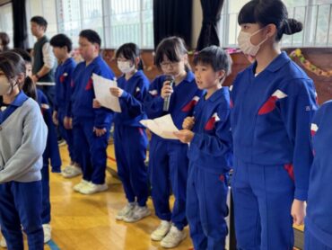 整列が完了し、5年生の司会進行で集会がスタートしました。