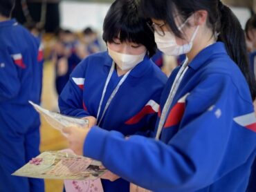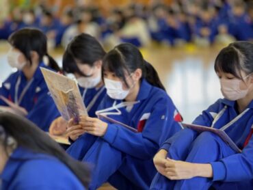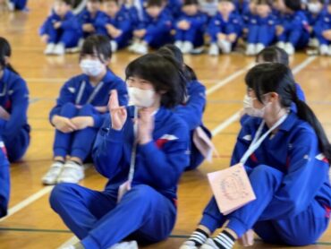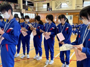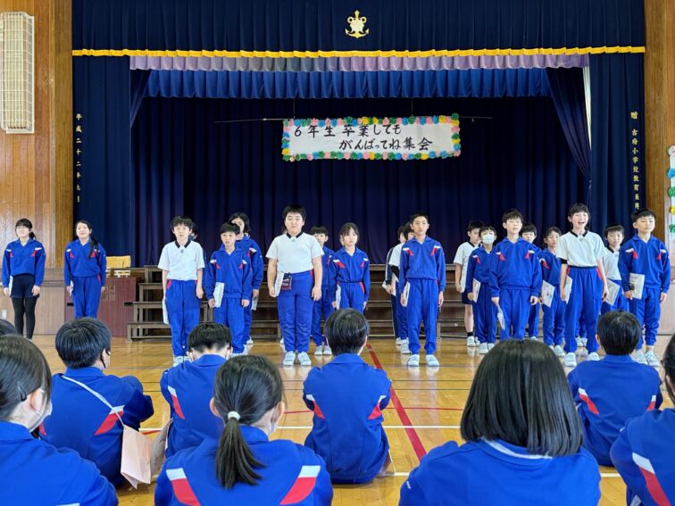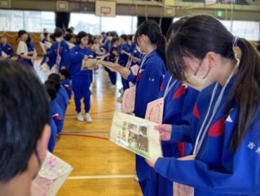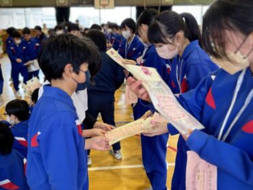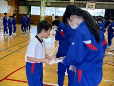 続いて4年生のプレゼントわたしです。6年生の好きな場所の写真に手紙を添えて渡しました。6年生は手紙を読んだり、友達と見せ合ったりしていました。