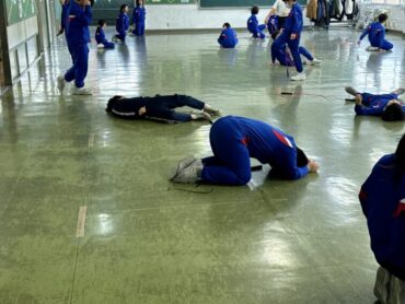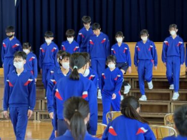 体育館での卒業練習が始まりました。とてもよい姿勢で、緊張感をもって取り組んでいました。呼びかけで壇上に上がる動きや降りて着席する練習です。きれいにスムーズに動くことを心掛けて頑張っていました。