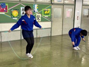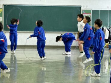 4年生 広場で縄跳び。頑張り過ぎたのでしょうか?ぐったりの4年生も。