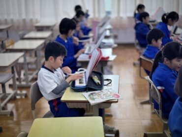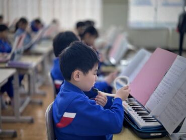 音楽の授業で鍵盤ハーモニカで「ミッキーマウスマーチ」の練習をしました。1~2小節ずつスモールステップで練習をしていきました。子供たちも大好きな曲なので、演奏できると嬉しい気持ちになることでしょう。