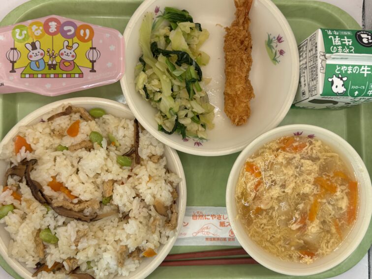 3/3(火)の給食です。今日はひな祭りに合わせた献立です。