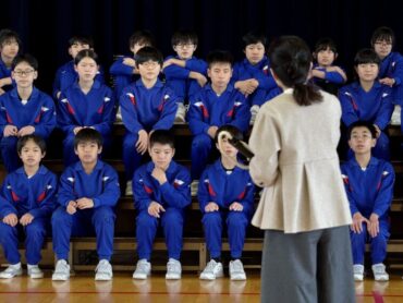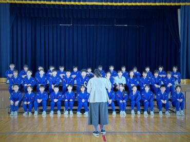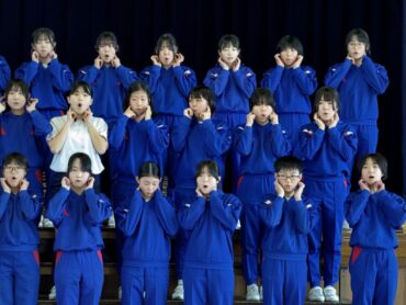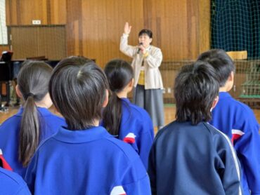 音楽の授業で、「旅立ちの日に」の練習を体育館で行いました。
