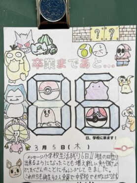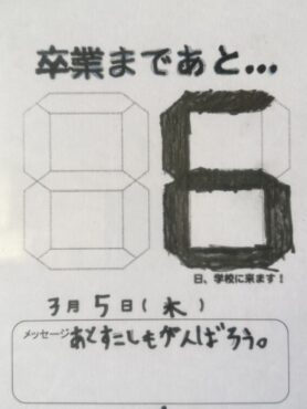 卒業式の歌練習をしました。今日は音楽の先生が来られる日だったので、指導をお願いしました。「さようなら」と「君が代」を練習しました。朝であまり声が出ていなかったのですが、練習を繰り返すうちに次第に声が響くようになりました。